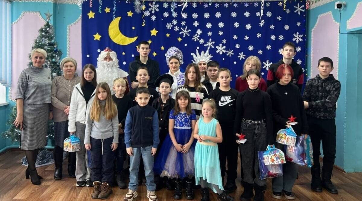 Исполнявшие роли Деда Мороза, Снегурочки и Снежной Королевы сотрудники Центра вместе с ребятами ...