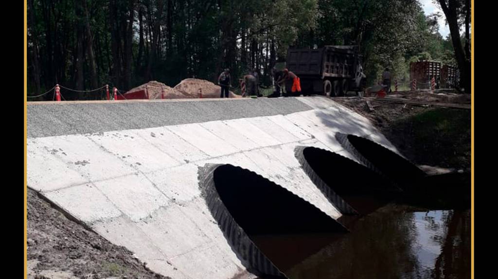 Как сообщает Брянская Губерния, смонтированы трубы с бетонными лотками, сделаны площадки входа и выхода труб и основание насыпи. На одной половине моста уложили асфальт.