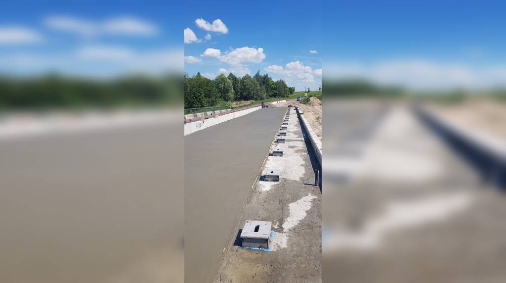 На одной половине моста полностью уложены балки пролетного строения. Работы идут по устройству выравнивающего слоя под устройство гидроизоляции пролетного строения.