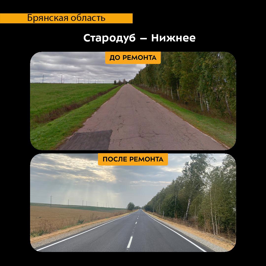 По национальному проекту «Безопасные качественные дороги» в Стародубском муниципальном округе Брянской области в 2024 году отремонтировали участок автодороги Стародуб – Нижнее протяженностью 4,6 км. Работы провела подрядная организация АО «Дорожник».