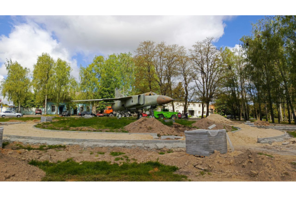 В Новозыбковском городском округе на ул. Красной полным ходом идут работы по благоустройству сквера с планером-самолетом МИГ-23 МЛД, установленном в 2007 году, рассказывает издание Маяк32.