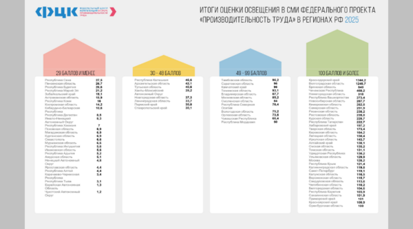 Третье место в годовом рейтинге по освещению в СМИ Федпроекта «Производительность труда» обеспечило Брянщине яркое завершение продуктивного 2025 года