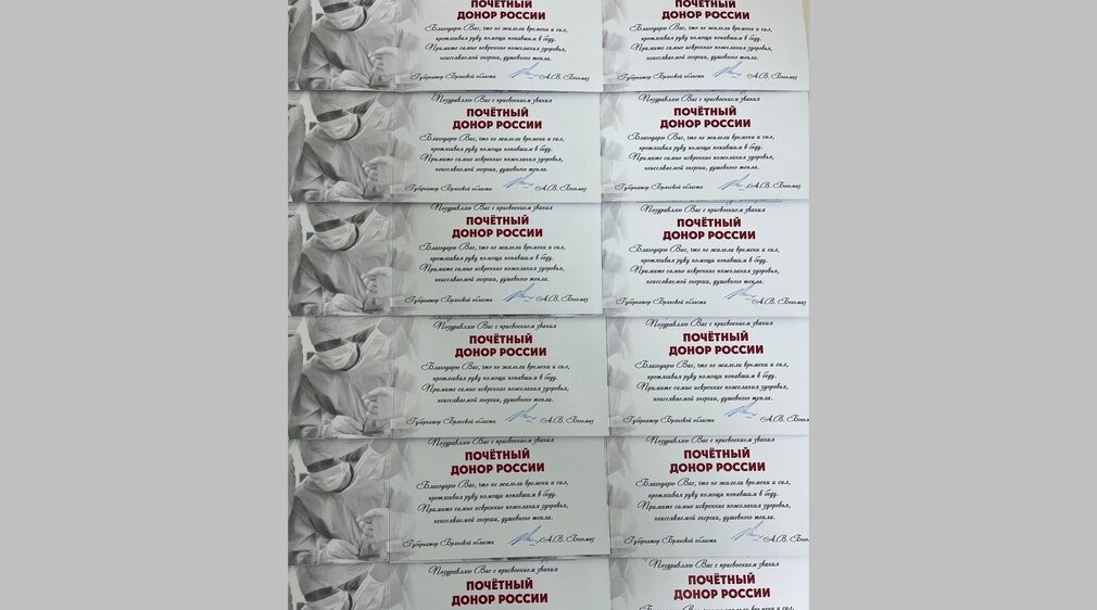 Звания «Почётный донор России» удостоены 12 жителей Брянщины