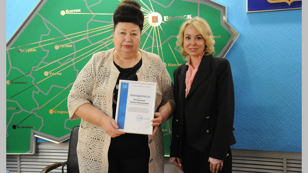 Как сообщает РИА «Стрела», на мероприятии заместителю губернатора Брянской области Галине Петушковой вручили благодарность ассоциации развития финансовой грамотности. Награду Галина Васильевна получила за активную работу в области реализации Стратегии повышения финансовой грамотности, формирования финансовой культуры населения региона и развития волонтерского движения.