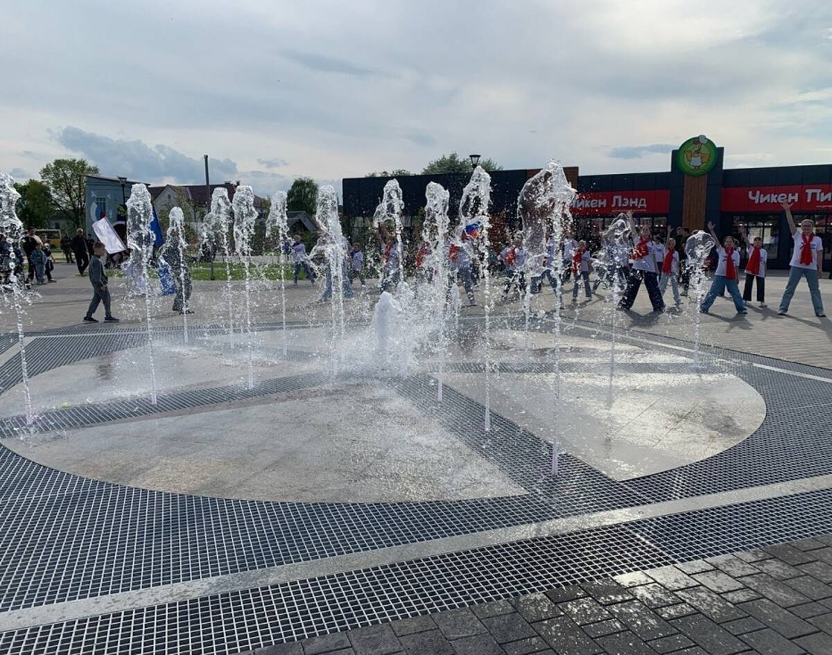 Сквер был благоустроен в прошлом году. Под аплодисменты зрителей включили новый фонтан.