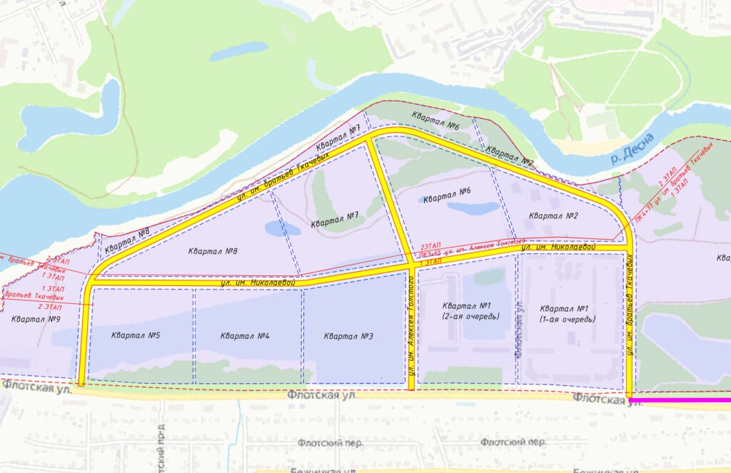 В Брянске завершается реализация еще одного крупного инфраструктурного проекта, сообщает пресс-служба Брянской городской администрации. В микрорайоне по улице Флотской подрядчик «Дорстрой32» построил новую улично-дорожную сеть, основу которой составили 3 дороги: имени Алексея Толстого — 0,8 км, имени Татьяны Николаевой — 1,5 км, имени братьев Ткачёвых — 2,4 км.