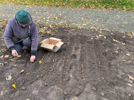 Луковицы цветов высаживают вдоль сквера имени 348-й стрелковой дивизии впервые. Предварительно с этих клумб, прилегающих к городской площади, были выкопаны и убраны на хранение луковицы канн.