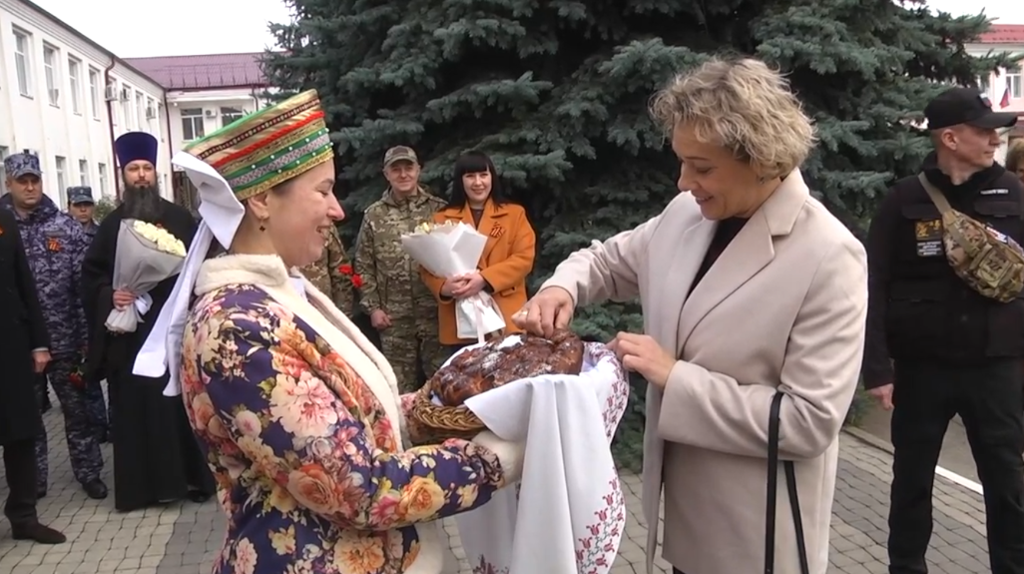 Вместе с местными жителями они возложили цветы к обновленной Стене памяти, посвященной героям Великой Отечественной войны.