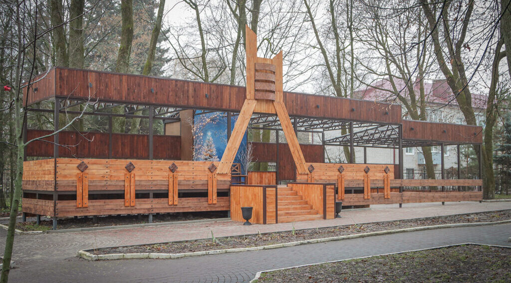 На входе планируется установить фигуры медвежат, которые будут созданы в следующем году на фестивале деревянных скульптур.