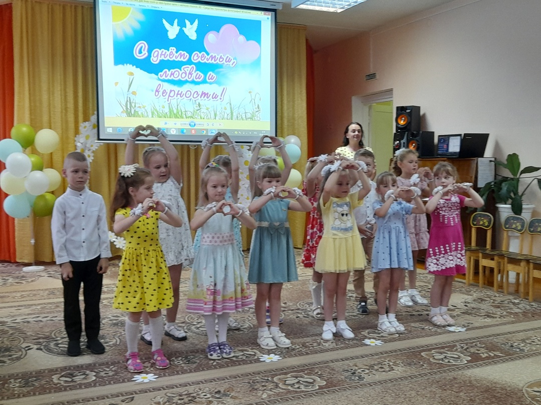 5 июля накануне Дня семьи, любви и верности в МБДОУ Дубровском детском саду №2 «Ромашка» прошёл концерт, посвящённый этому празднику. Душевные песни, проникновенные стихотворения звучали в исполнении воспитанников и их родителей. Танцевальными номерами всех порадовали малыши и ребята старшей группы. Семьи Сергеевых, Ивковых подготовили свои семейные творческие выступления, которые были очень тепло встречены зрителями. Завершился концерт зажигательным танцевальным флешмобом «Кнопочки». Его организовали и провели учащиеся Дубровской №2 СОШ, участники Движения Первых, наши выпускники.