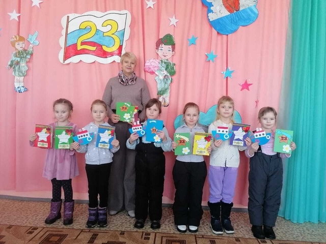 Накануне Дня защитника Отечества воспитанники МБДОУ Дубровского детского сада №2 «Ромашка» вместе с педагогами поздравили с праздником пожилых людей, подопечных комплексного центра социального обслуживания населения Дубровского района. Ребята сделали поздравительные открытки и передали их сотрудникам центра для вручения пожилым людям, дедушкам с пожеланиями здоровья, мира и долголетия