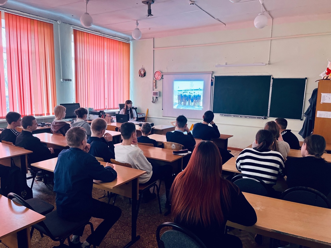 В рамках профориентационной работы в МБОУ Дубровской №1 СОШ состоялась встреча обучающихся 8б класса (классный руководитель Семкина Н.С.) с курсанткой «Рыльского авиационного технического колледжа гражданской авиации», выпускницей школы — Никитиной Полиной.