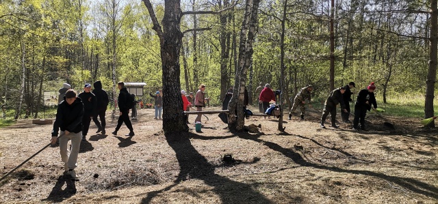 У мемориала памяти жителям д. Хотен был организован и проведен субботник. После уборки участники похода провели экспресс-митинг.