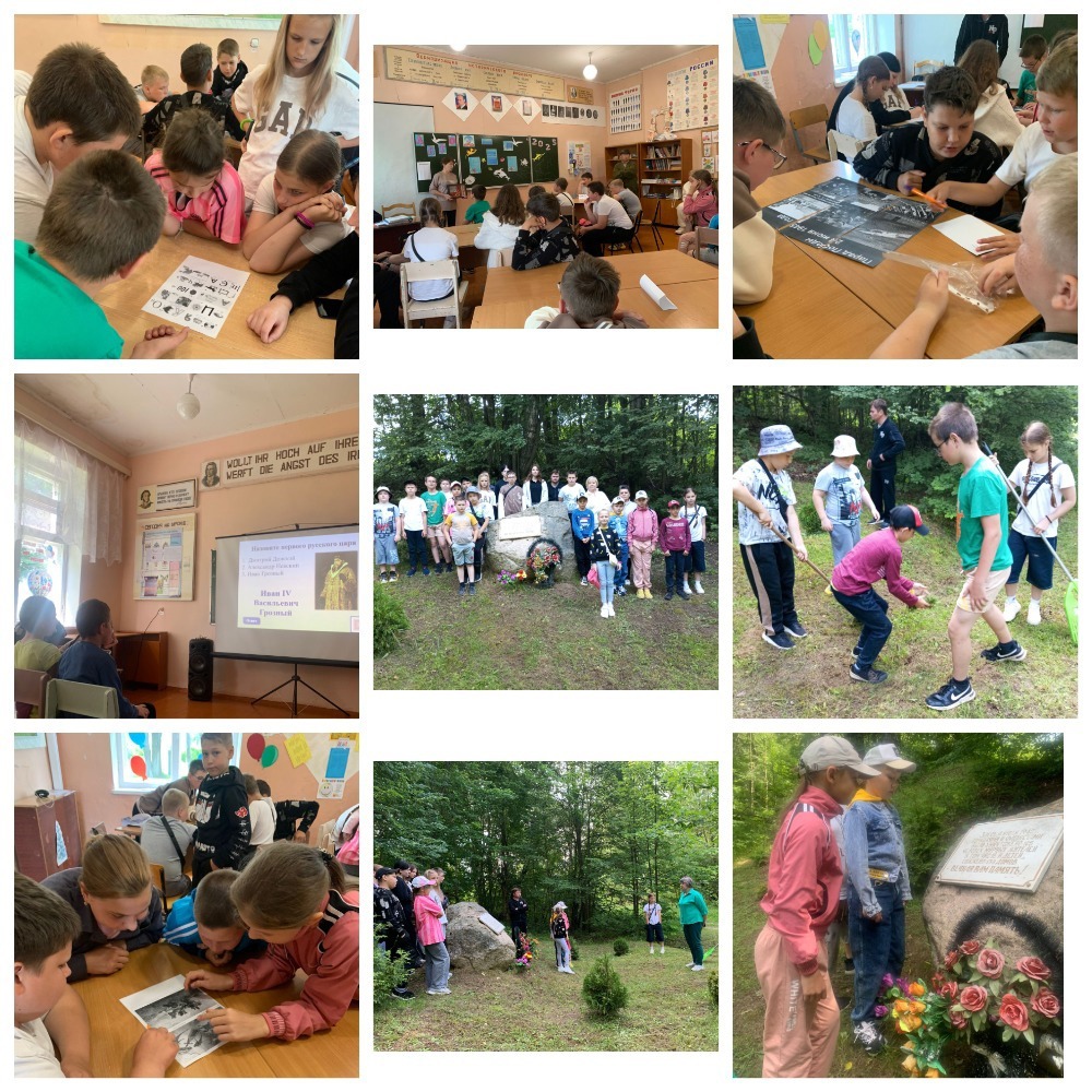 24 июня в пришкольном лагере «Волна» на базе филиала МБОУ Пеклинской СОШ Рябчинская СОШ прошел День истории. Ребята погрузились в мир прошлого, настоящего и будущего, участвуя в разнообразных и интересных мероприятиях. Провели видео-экскурсию «История России», поучаствовали в викторине «Колесо истории». Побывали у памятного камня в деревне Буда, на месте трагических событий 1942 года, где были расстреляны 105 мирных жителей и сожжены 130 домов. Одним из трогательных моментов дня для ребят стала история местного жителя Якушева Филиппа Андреевича, останки которого были недавно перезахоронены в с. Рябчи. Его родственница, Т.Н.Гаврева, рассказала детям о жизни красноармейца и показала полученное в подарок от поисковиков панно с вещами Филиппа Андреевича. Очень важно, когда каждый ребенок может прикоснуться к бережно хранимой истории родного края.